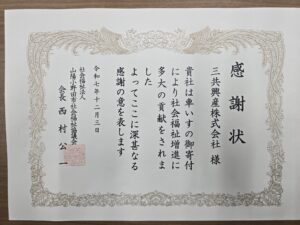 12月2日に宇部市社会福祉協議会様、12月3日に山陽小野田市社会福祉協議会様の方へ、毎年恒例の取り組みになる車椅子の寄贈をさせていただきました。